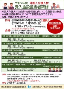 令和7年度 外国人介護人材 受入施設担当者研修 参加者大募集します!※10月21日(火)募集定員達しました。