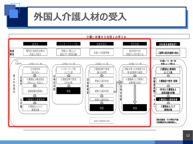 特定技能、技能実習、介護福祉士候補留学生 受入事例