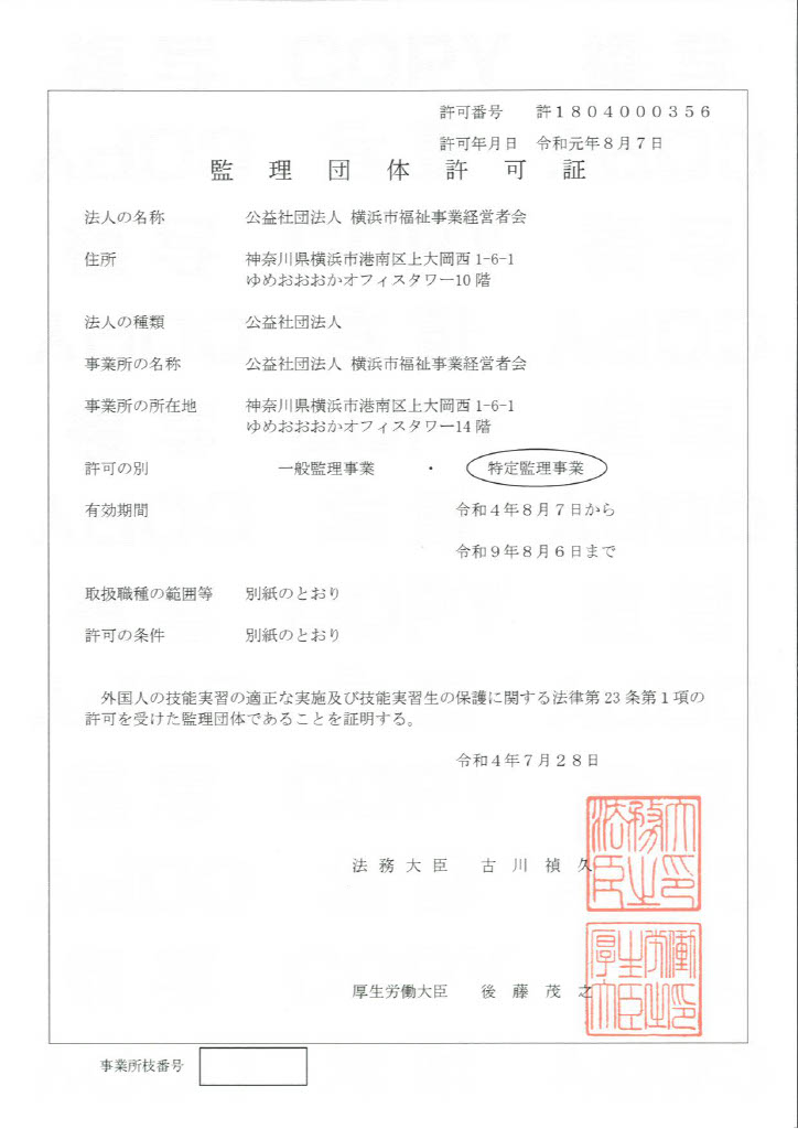 - 特定技能登録支援機関(特許番号19登ー000025)