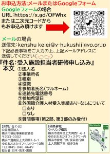 メールアドレス→kenshu_keiei@y-hukushijigyo.or.jp(こちらまで送信してください)