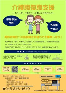 高齢者施設への再就職を希望する方を募集いたします。